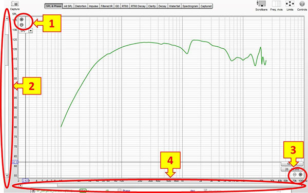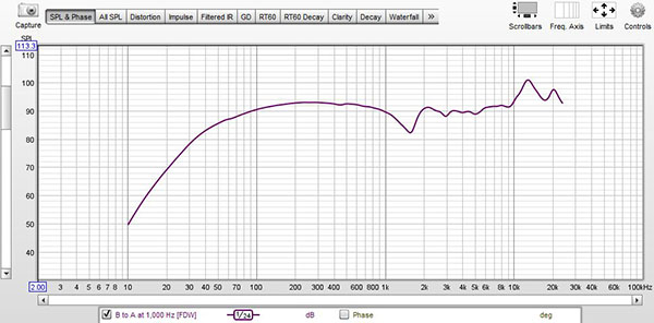 このように、測定結果は、SPL & Phase(ここではPhaseの表示を消しています)で最初に表示されます。