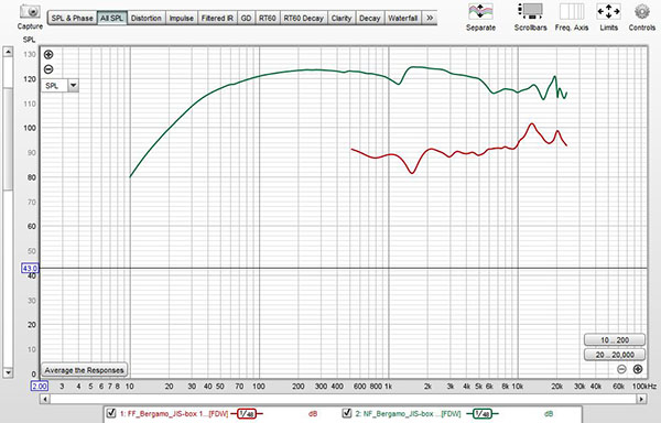 つまり、Bergamoの場合は、1.37kHz以下のニアフィールド測定の測定値が無響室とほぼ同等のパフォーマンス適用範囲となります。