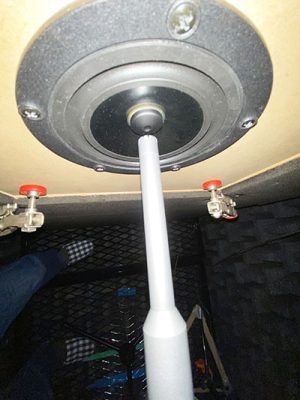 まず、中低域領域を、マイクとスピーカーとを接触直前まで近接させて測定するニアフィールド測定で行います。