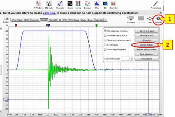 ただし、USBマイクを用いている場合は、複数スイープは使わず、1回の測定とします。 - ⑦ No timing reference と、Set t=0 at IR peak に設定しています。