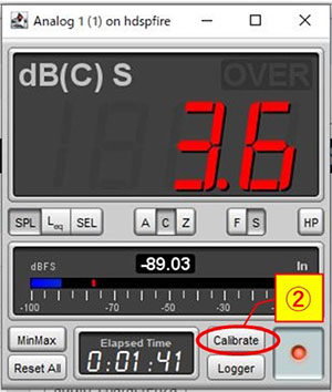 ” USBマイクを使用していない場合、cal信号の再生中に、SPLメーターまたはマイクプリアンプから適切な信号レベルを取得するには、インターフェイスの入力ボリュームを調整する必要があります。” とのことです。