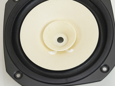 ハトメがあることで、コーン紙内での重量バランスが不均等になり、不当分割共振が発生するためです。特に、小さな口径のユニットで、それが顕著に出てくるようです。 そこで、本シリーズでは、ハトメレスということで、ハトメをなくしています。