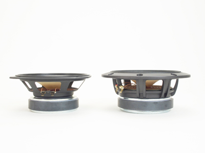 このように、大まかな電気的特性は近いのですが、一方、今回のEn系からの改良で、コーン紙が新しくなっており、また、FE-WK系で初めて採用されたハトメレスの採用と共にダンパーも見直され、よりリニアな振幅特性を得ているとのことです。