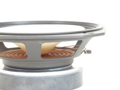 実際、前掲のハトメのある場合と、ハトメレスの部分の写真を比較すると、コーン紙の動きがスムーズになり歪が低減したであろうことが、みるからにわかるような気がします。また、ダンパーそのものの形状と材料も見直されており、直線性の高い振幅特性を得ている、とのことです。 このハトメレスを含むダンパー周辺の構造的な変化と、新規のコーン紙が、前モデルのEnと最も異なる点と言えるでしょう。
