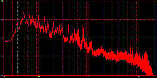 全体的には、50Hz付近に大きなピークがあり、37Hz付近もかなり高いピークがあります。30Hz以下はおそらく意図的にストンと落ちています。