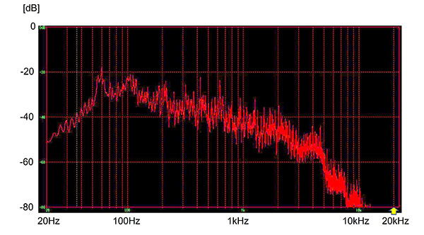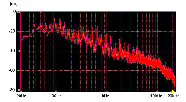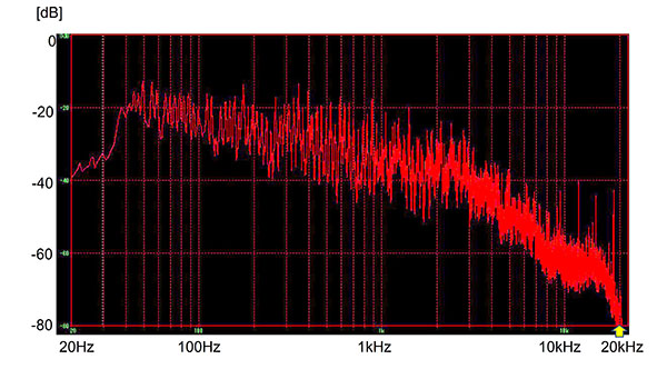 ゆったりとした音楽が、広い音域で、奏でられます。低域の大きなピークは、37Hz、D1の音です。その下の、20-30Hz台にも、いくつかピークが見られます。
