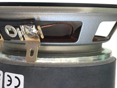 磁気回路裏のモデル名などの表記はシールではなく印刷となっており、こちらも大量生産向きになっています。しっかりと印字されており、爪でこすっても消える気配がありませんでした。