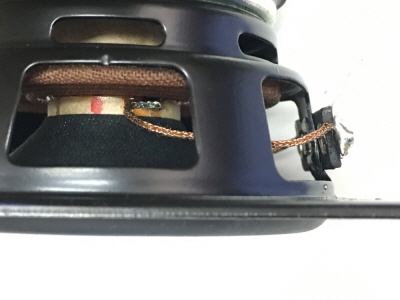FF85WKと比較すると、P800Kのダンパーと中継線 ダンパーの上にボビンが顔をのぞかせて中継線がハンダ付けされているのがわかる