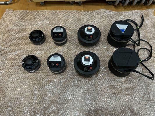 続いて、コンプレッションドライバーです。JBL2機種、FOSTEX1機種、TAD1機種、